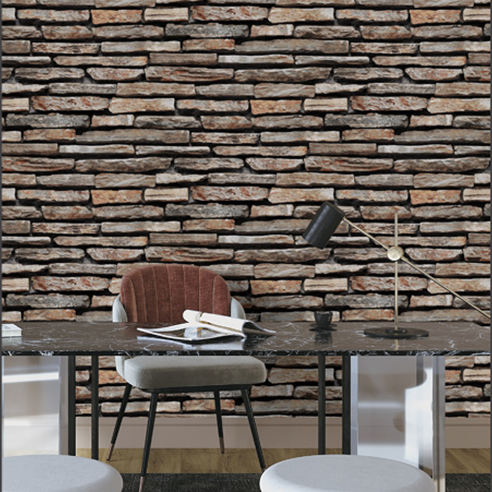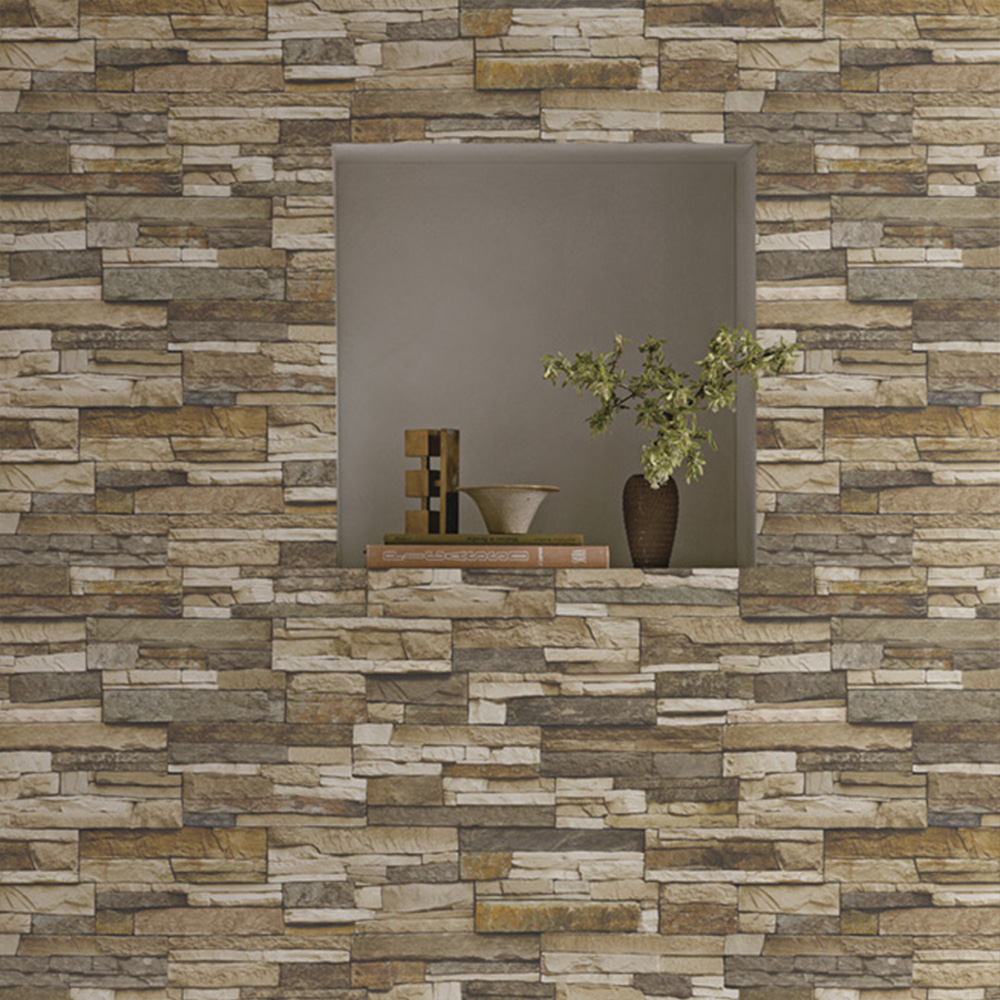 This high-quality wall covering replicates the rich texture and dimensional look of natural layered stone, offering a rugged yet sophisticated ambiance. The layered stone pattern in varying shades of earthy browns, greys, and taupes creates a cozy, organic atmosphere ideal for feature walls in living rooms, cottages, or contemporary interiors. Made with durable, easy-to-install materials, this wallpaper combines realistic 3D depth with the convenience of modern wall décor.